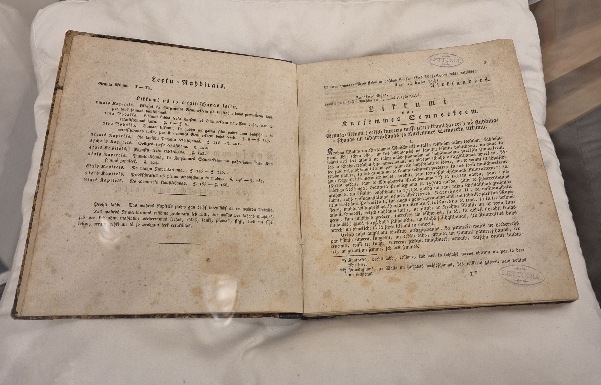 Vēstures liecība LU bibliotēkā: Kurzemes zemnieku brīvlaišanas likums