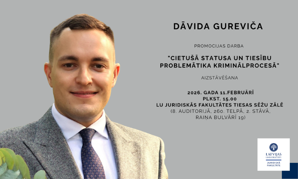 11. februārī promocijas darbu "Cietušā statusa un tiesību problemātika kriminālprocesā" aizstāvēs Dāvids Gurevičs